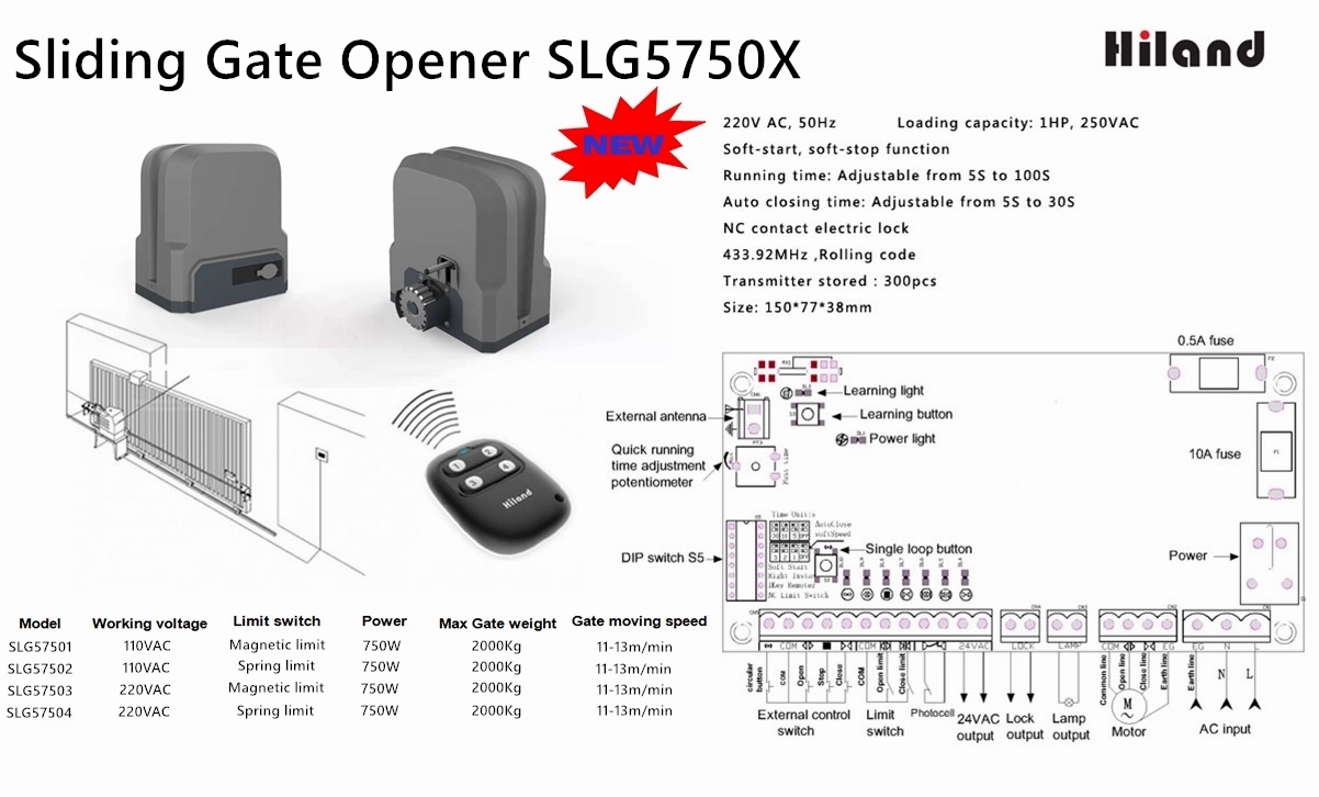 Hiland Sliding Gate Opener SLG57503 with Magnetic Limit and 750W Power